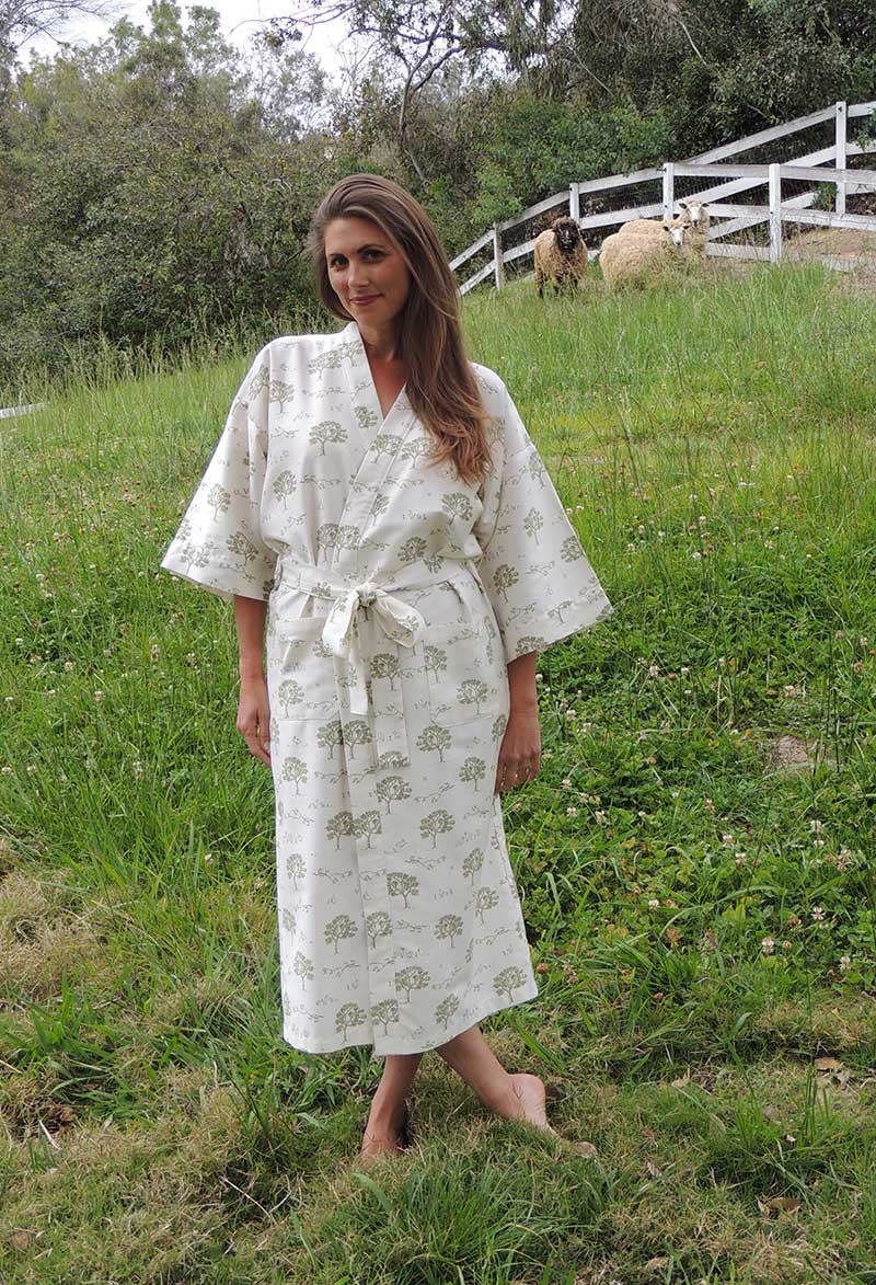 "I bought one of Britta's robes years ago. Loved the fit, the beautiful fabric, and the soft organic feel. I just bought two more. So pretty for lounging around with my coffee in the morning, to put on after a shower, or to take on vacation to wear after a long day on the beach. Best robes ever!"